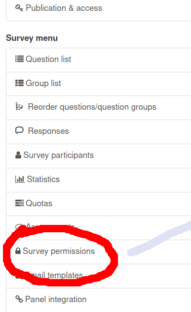 It is also possible to, for example, give someone the permission to delete responses. That can be handy, if your survey is something like an order form, and you want to delete those where the order is already done. Or you can give permission to look statistics only, not single responses.