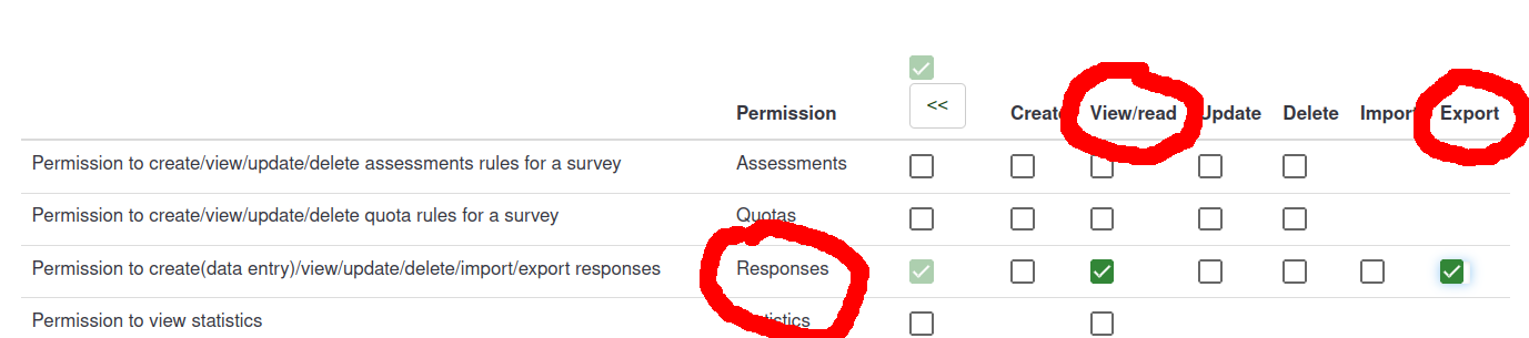 To give only permissions to read and export results, just click View/read and Export -columns on the Responses-row, and then Save-button.